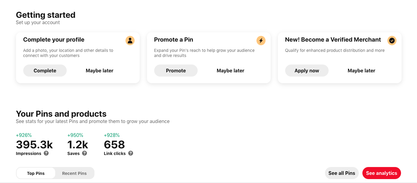 Website clicks are WAY up (sometimes as much as 100%) for specific product pages since we became verified. We’ve also seen better impressions for our pins (like up 400%!), better conversions and an overall better reach for product pins and blog post pins.