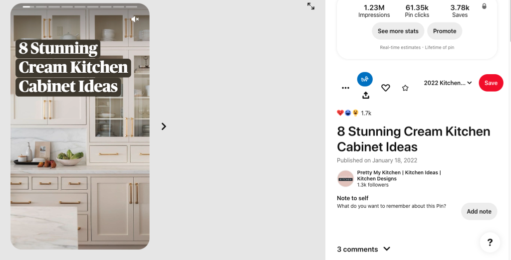 We saw that this was especially true with home decor brands that specialize in content marketing. One of our clients, Pretty My Kitchen, specializes in creating content around kitchen design and decor ideas. They have seen some crazy stats this year from solely focusing on Pinterest! This client has reached almost a quarter of a million monthly views since we started with them at the beginning of this year.